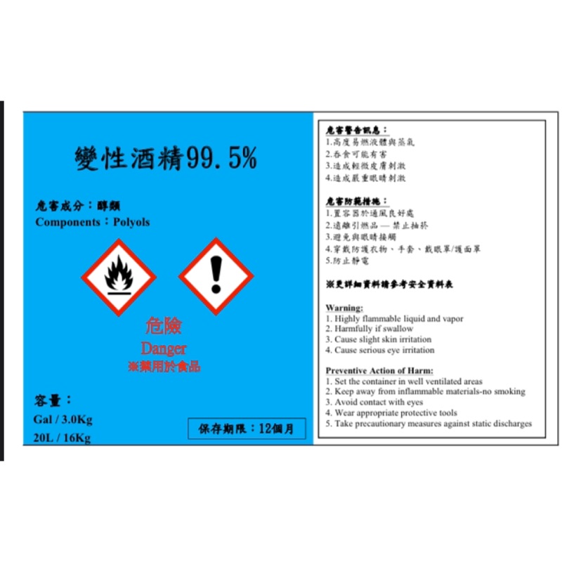 Search for text in url. 1994年,150萬噸異丙醇被產於美國,歐洲和日本。 該化合物可藉由 水 和 丙烯 進行化合反應。 它也可藉由氫化 丙酮 製備。 有兩個水合反應方法:通過硫酸法間接 水合 ,以及直接 水合 。 前者,在美國較常被使用,使用低純度的丙烯進行反應;後者,則需要高純度的丙烯,經常在歐洲被使. Search for text in self post contents. 買時跟店員說清楚要哪種濃度就可以。 其中較易出誤會,是買錯了 75% 酒精。) 乙醇及異丙醇用來殺菌,雙氧水用來清除孢子,甘油用來護手,改用蘆薈之類也可以。 世衛沒有加入啫喱劑的有效數據,所以不建議。 至於香氣(例如加精油),世衛不建議. 危险性类别: 侵入途径: 健康危害: 本品为中枢神经系统抑制剂。 首先引起兴奋,随后抑制。 非生物降解性: 生物富集或生物积累性: 其它有害作用: 该物质对环境可能有危害,对水体应给予特别注意。